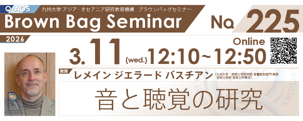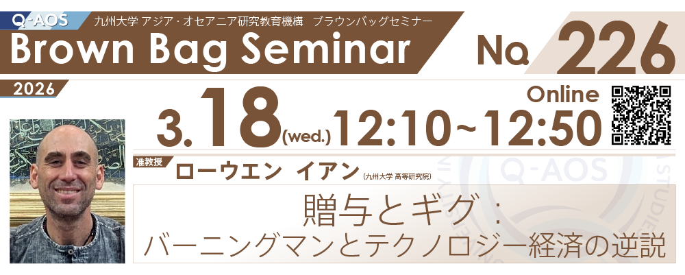 九州大学アジア・オセアニア研究教育機構(Q-AOS)では「Brown Bag Seminar Series」を毎週水曜日のランチタイムに開催しております。