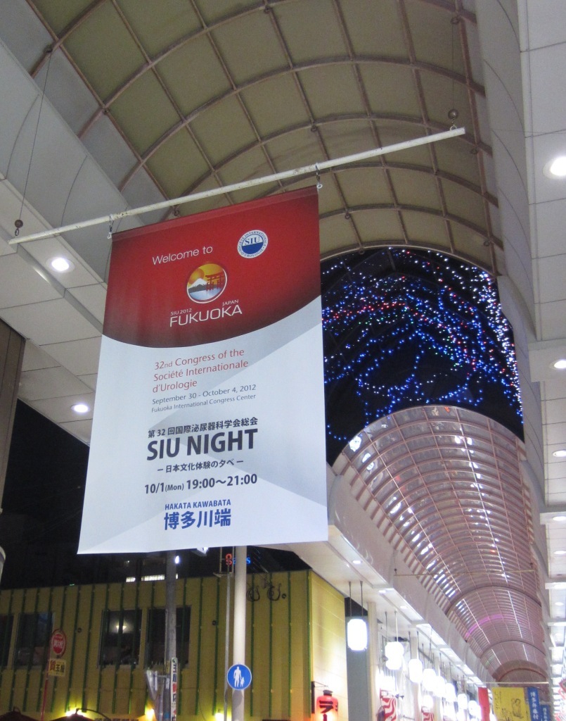 世界93カ国地域から約2800名の方々が福岡に集い、9月30日から10月4日まで第32回国際泌尿器科学会総会(SIU)が開催されました。30日には皇太子殿下の御臨席を仰ぎ盛大に開会式が行なわれました。 今回のSIUの一大イベント、「福岡でしかできないおもてなし~SIUナイト」は川端商店街を中心に櫛田神社や「博多町家」ふるさと館、博多伝統工芸館で開催されました。