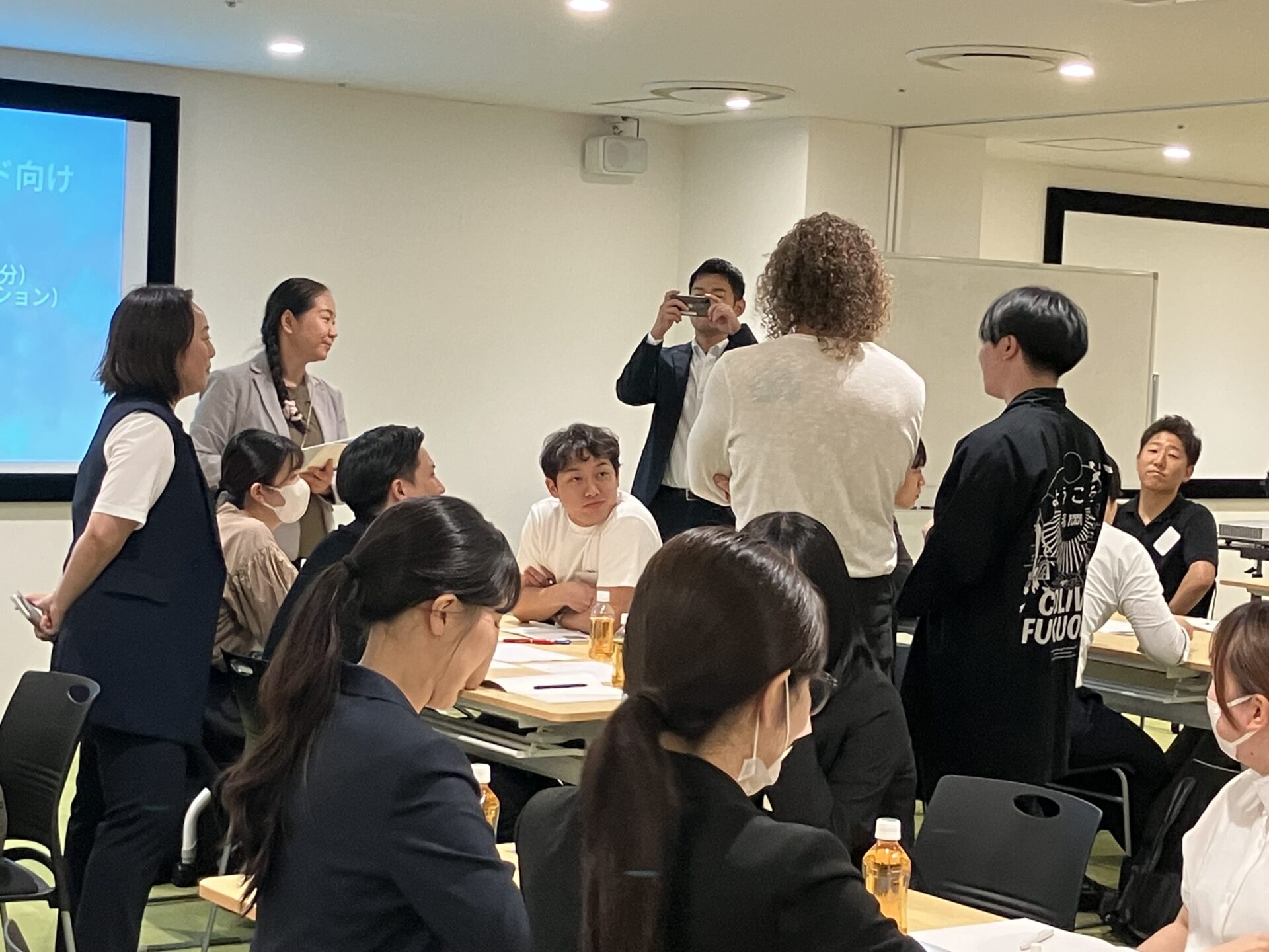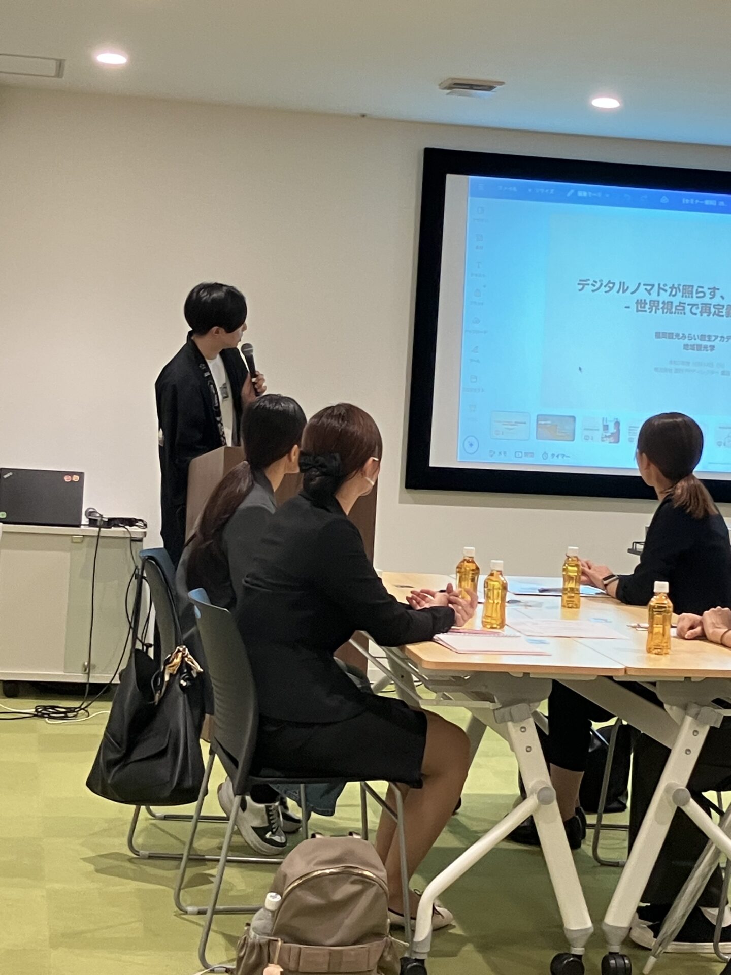 まさに、福岡市は先日まで㈱遊行に業務委託する形で、”COLIVE FUKUOKA2025”が実施されており、多くのデジタルノマドの方々が福岡に滞在されている中で、サプライズとして実際にフランスから来られたデジタルノマドの方(エイドリアン氏)にも参加いただきながら、講義後にデジタルノマド向けのサービス開発のグループワークにも取り組みました。