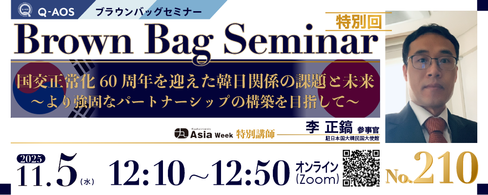九州大学アジア・オセアニア研究教育機構(Q-AOS)では「Brown Bag Seminar Series」を毎週水曜日のランチタイムに開催しております。