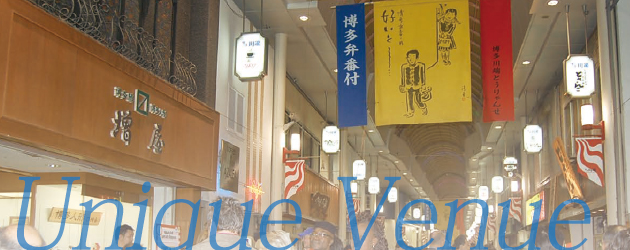 Having been selected as a special zone for job creation and global start up opportunities, Fukuoka is a fertile ground for new companies and fresh ideas. With one of the youngest populations of the major cities in Japan there are often many events and exhibitions pertaining to cultural and other creative industries such as gaming, anime, fashion, and design. For this reason having unique meeting spaces tailored to these social gatherings is essential, and there are several we are proud to call ‘uniquely Fukuokan’.