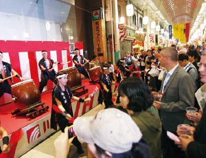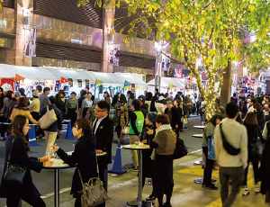 Kirameki-Dori Avenue is a 250 meter public street in downtown central Fukuoka. Like in Kawabata, it is possible to use the street as a place to host standing parties, often as part of tie-ups with other events. A notable example was “Fashion Week Fukuoka 2015” where a fashion show held partly on stage, but also organically woven into Kirameki-dori itself, lending a cool and urban feeling to the proceedings.